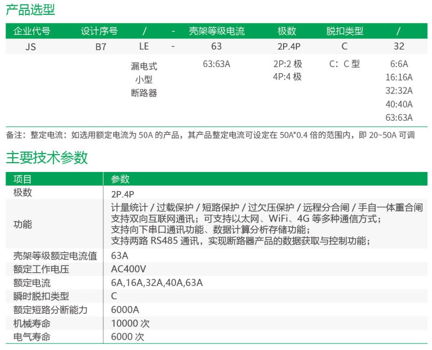 • JSB7LE-63-4GB系列一体式漏电断路器加标准型网关-4G网